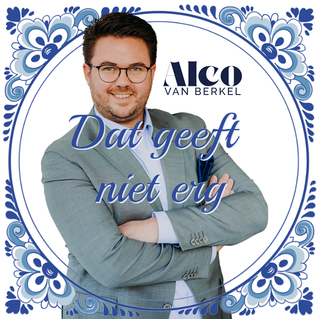 Op zijn eigen feest ter ere van zijn 40e verjaardag verraste Alco van Berkel zijn gasten niet met cadeaus voor zichzelf, maar met iets bijzonders voor hen: de live première van zijn allereerste single “Dat Geeft Niet Erg”. De zaal barstte los in enthousiasme. Een nieuwe Nederlandstalige hit was geboren. Een zin van zijn zoontje werd een lied De inspiratie voor het nummer kwam onverwachts, van zijn vierjarige zoontje Pim. Toen Alco op een moeilijke dag zijn hoofd liet hangen, zei Pim troostend: “Papa, dat geeft niet erg.” Die uitspraak is een dubbele bevestiging: “dat geeft niet” en “het is niet erg”. Hij laat zien dat het niet uitmaakt als het even tegenzit, je moet jezelf herpakken en doorgaan. Die zin raakte Alco zo diep dat hij hem liet vereeuwigen op een klassiek Delftsblauw tegeltje. Het tegeltje werd de cover van de single en vormde later de basis voor de songtekst. Zelfgeschreven tekst, professionele productie. De tekst van “Dat Geeft Niet Erg” is volledig geschreven door Alco van Berkel zelf. De compositie en productie zijn in handen van Roy Otters (Anro Productions), bekend van zijn werk binnen het Nederlandstalige genre. Samen zijn ze de studio van Roy ingedoken en al snel was een nieuwe hit geboren. “Dat Geeft Niet Erg”: een lied vol gezelligheid en plezier Met zijn warme stem en de gezellige melodie wist Alco de zaal uit zijn dak te laten gaan. Het was eigenlijk helemaal niet de bedoeling om het nummer verder te gaan uitbrengen en te promoten, maar iedereen om Alco heen zeiden dat hij deze debuutsingle een kans moest geven voor het grotere publiek. De videoclip is gemaakt van zijn debuutoptreden op het feest van zijn 40e verjaardag deze is ook te vinden op Youtube.