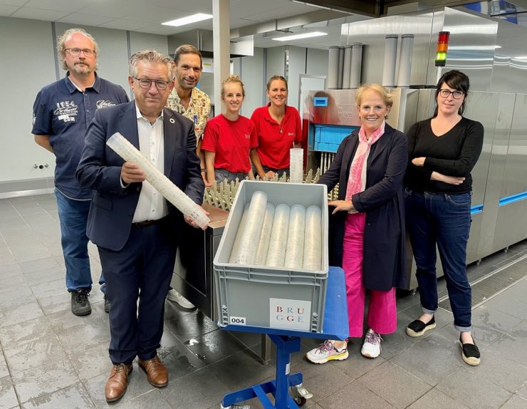 Schepen van Klimaat en Energie Minou Esquenet: “We hebben beslist om een samenwerkingsovereenkomst af te sluiten met SOBO@WERK VZW om onze Brugse herbruikbare bekers ter beschikking te stellen aan bepaalde externe Brugse organisatoren. Het gaat om stedelijke adviesraden, organisatoren voor hun ondersteunend evenement en organisatoren van benefieten, erkende Brugse verenigingen, Brugse scholen en kinderdagverblijven, organisatoren van erkende buurt- en wijkfeesten, vzw’s, stichtingen en feitelijke verenigingen zonder winstoogmerk, overheidsinstanties en intercommunales. Ook organisatoren van privé- en commerciële evenementen kunnen bij het stadsbestuur een aanvraag indienen voor het gebruik van de bekers. De specifieke voorwaarden staan in het reglement op de website van Stad Brugge.”
